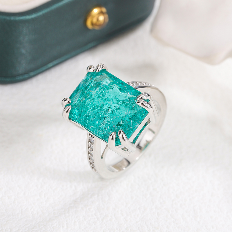 “925 Silver Plated Blue Green Moissanite Ring, Fire Sparkling, Luxury Party Birthday Jewelry.”
